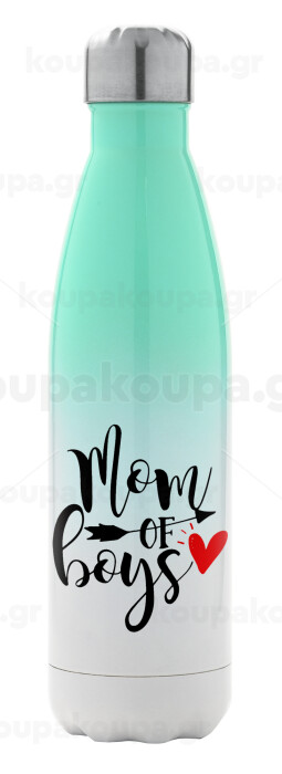 Mom of boys, Μεταλλικό παγούρι θερμός Πράσινο/Λευκό (Stainless steel), διπλού τοιχώματος, 500ml