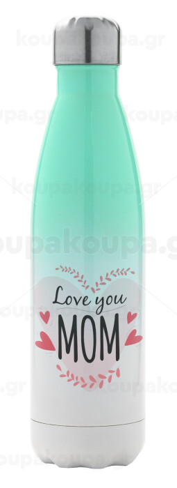 Mother's day I Love you Mom heart, Μεταλλικό παγούρι θερμός Πράσινο/Λευκό (Stainless steel), διπλού τοιχώματος, 500ml