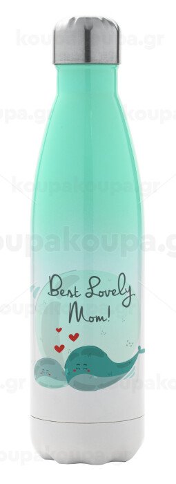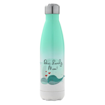 Mothers Day, whales, Μεταλλικό παγούρι θερμός Πράσινο/Λευκό (Stainless steel), διπλού τοιχώματος, 500ml