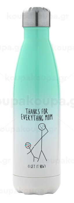 Thanks for everything mom, Μεταλλικό παγούρι θερμός Πράσινο/Λευκό (Stainless steel), διπλού τοιχώματος, 500ml