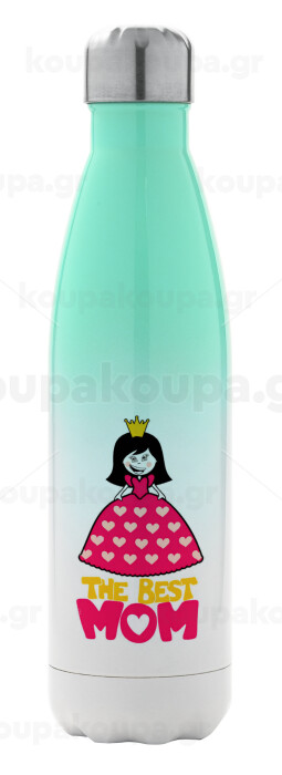 The Best Mom Queen, Μεταλλικό παγούρι θερμός Πράσινο/Λευκό (Stainless steel), διπλού τοιχώματος, 500ml