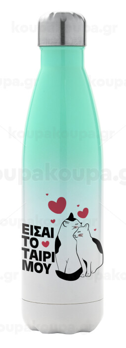 Είσαι το ταίρι μου, Μεταλλικό παγούρι θερμός Πράσινο/Λευκό (Stainless steel), διπλού τοιχώματος, 500ml