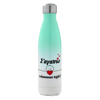 Σ΄αγαπώ τόοοοσο πολύ (Κορίτσι)!!!, Μεταλλικό παγούρι θερμός Πράσινο/Λευκό (Stainless steel), διπλού τοιχώματος, 500ml