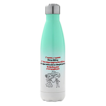 Σ΄ αγαπώ σ΄ αγαπώ που με βάζεις, Μεταλλικό παγούρι θερμός Πράσινο/Λευκό (Stainless steel), διπλού τοιχώματος, 500ml