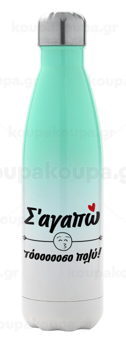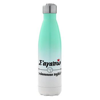 Σ΄ αγαπώ τόοοοοοσο πολύ!!!, Μεταλλικό παγούρι θερμός Πράσινο/Λευκό (Stainless steel), διπλού τοιχώματος, 500ml