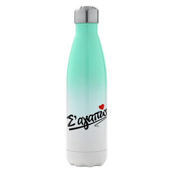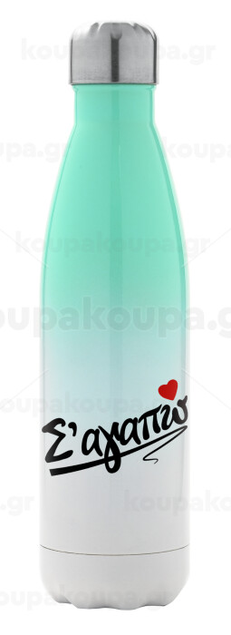 Σ΄ αγαπώ!!!, Μεταλλικό παγούρι θερμός Πράσινο/Λευκό (Stainless steel), διπλού τοιχώματος, 500ml