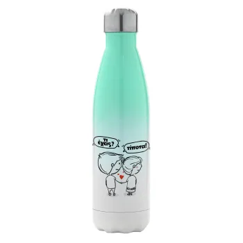 Τι έχεις? Τίποτα!, Μεταλλικό παγούρι θερμός Πράσινο/Λευκό (Stainless steel), διπλού τοιχώματος, 500ml