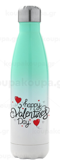 Happy Valentines Day!!!, Μεταλλικό παγούρι θερμός Πράσινο/Λευκό (Stainless steel), διπλού τοιχώματος, 500ml