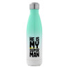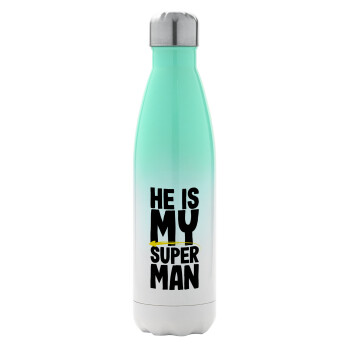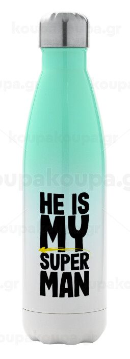 He is my superman, Μεταλλικό παγούρι θερμός Πράσινο/Λευκό (Stainless steel), διπλού τοιχώματος, 500ml