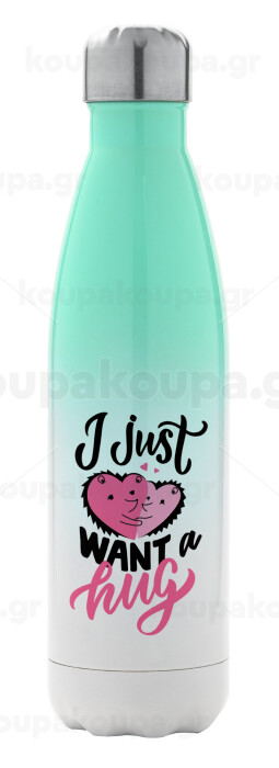 I Just want a hug!, Μεταλλικό παγούρι θερμός Πράσινο/Λευκό (Stainless steel), διπλού τοιχώματος, 500ml