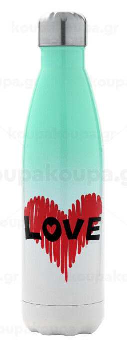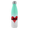 I Love You red heart, Μεταλλικό παγούρι θερμός Πράσινο/Λευκό (Stainless steel), διπλού τοιχώματος, 500ml