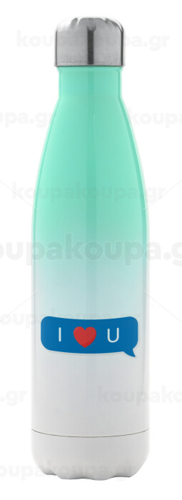 I Love You text message, Μεταλλικό παγούρι θερμός Πράσινο/Λευκό (Stainless steel), διπλού τοιχώματος, 500ml