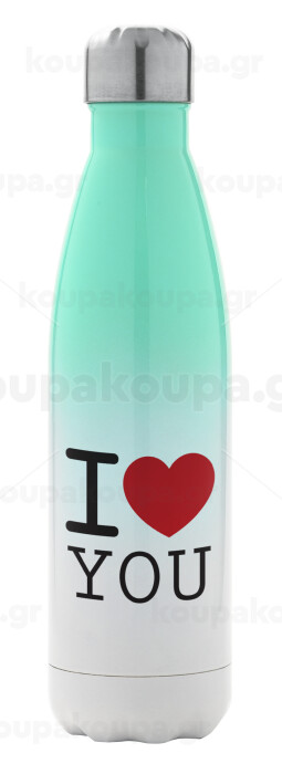 I Love you classic, Μεταλλικό παγούρι θερμός Πράσινο/Λευκό (Stainless steel), διπλού τοιχώματος, 500ml