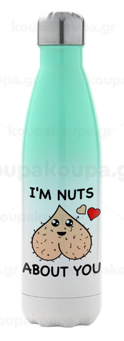 I'm Nuts About You, Μεταλλικό παγούρι θερμός Πράσινο/Λευκό (Stainless steel), διπλού τοιχώματος, 500ml