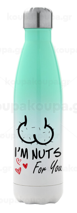 I'm Nuts for you, Μεταλλικό παγούρι θερμός Πράσινο/Λευκό (Stainless steel), διπλού τοιχώματος, 500ml