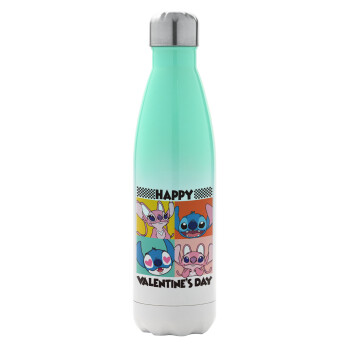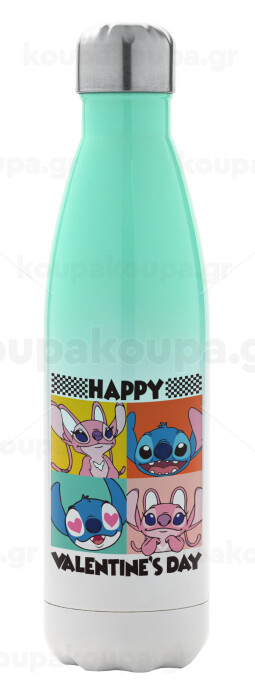 Lilo & Stitch Happy valentines day, Μεταλλικό παγούρι θερμός Πράσινο/Λευκό (Stainless steel), διπλού τοιχώματος, 500ml