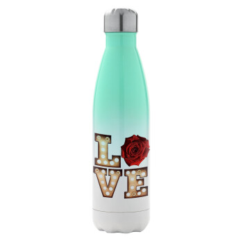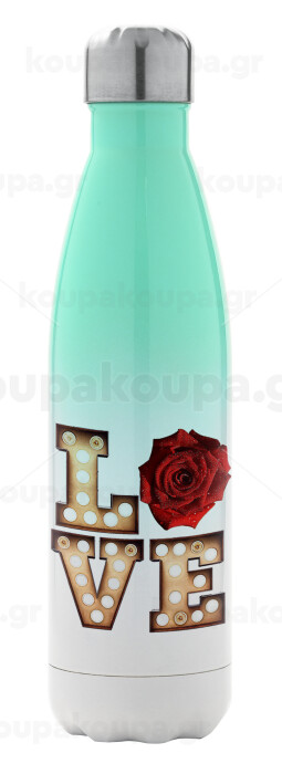 Love lights and roses, Μεταλλικό παγούρι θερμός Πράσινο/Λευκό (Stainless steel), διπλού τοιχώματος, 500ml