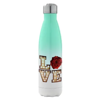 Love lights and roses, Μεταλλικό παγούρι θερμός Πράσινο/Λευκό (Stainless steel), διπλού τοιχώματος, 500ml
