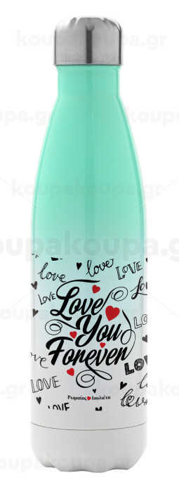 Love You Forever, Μεταλλικό παγούρι θερμός Πράσινο/Λευκό (Stainless steel), διπλού τοιχώματος, 500ml