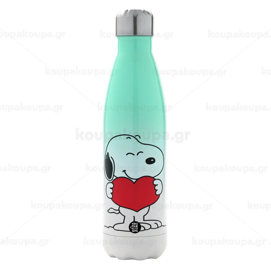 Snoopy takemy heart, Μεταλλικό παγούρι θερμός Πράσινο/Λευκό (Stainless steel), διπλού τοιχώματος, 500ml