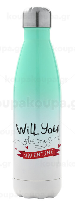 Will you be my Valentine???, Μεταλλικό παγούρι θερμός Πράσινο/Λευκό (Stainless steel), διπλού τοιχώματος, 500ml