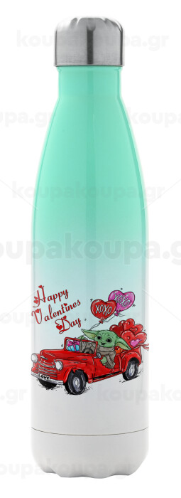 Yoda, happy valentines day (xoxo), Μεταλλικό παγούρι θερμός Πράσινο/Λευκό (Stainless steel), διπλού τοιχώματος, 500ml