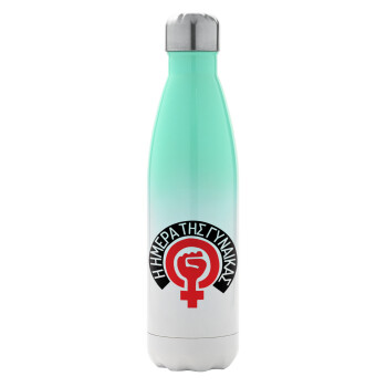 Ημέρα της γυναίκας, Μεταλλικό παγούρι θερμός Πράσινο/Λευκό (Stainless steel), διπλού τοιχώματος, 500ml