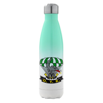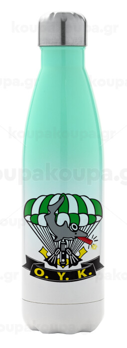 Ο.Υ.Κ., Μεταλλικό παγούρι θερμός Πράσινο/Λευκό (Stainless steel), διπλού τοιχώματος, 500ml