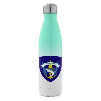 Ο τολμών νικά, καρχαρίας, Μεταλλικό παγούρι θερμός Πράσινο/Λευκό (Stainless steel), διπλού τοιχώματος, 500ml