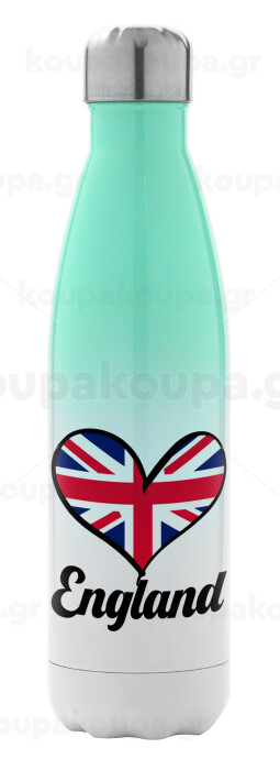 England flag, Μεταλλικό παγούρι θερμός Πράσινο/Λευκό (Stainless steel), διπλού τοιχώματος, 500ml