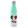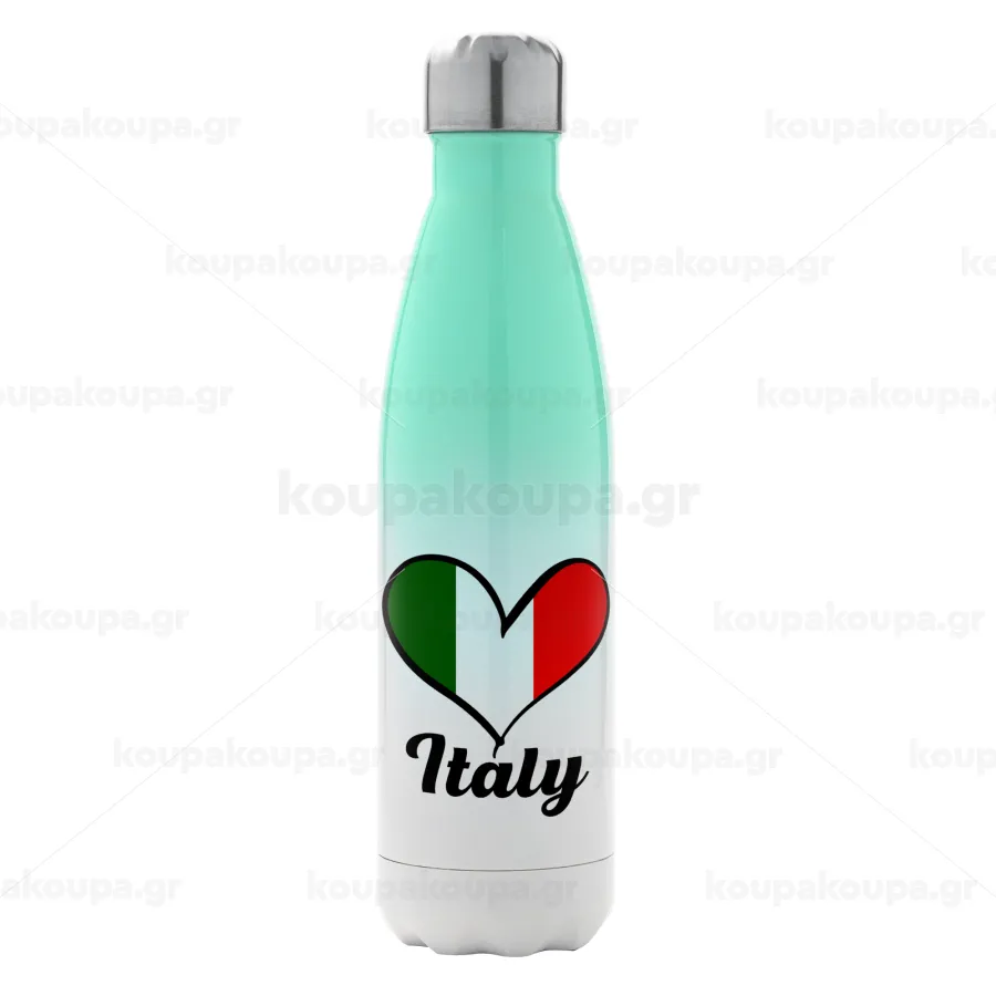 Italy flag, Μεταλλικό παγούρι θερμός Πράσινο/Λευκό (Stainless steel), διπλού τοιχώματος, 500ml