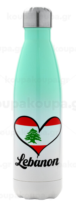 Lebanon flag, Μεταλλικό παγούρι θερμός Πράσινο/Λευκό (Stainless steel), διπλού τοιχώματος, 500ml