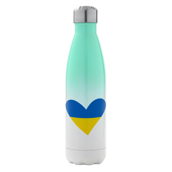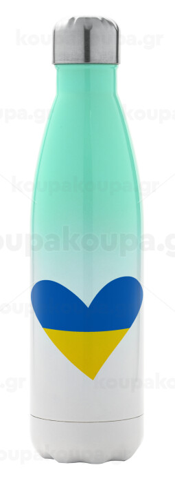 UKRAINE heart, Μεταλλικό παγούρι θερμός Πράσινο/Λευκό (Stainless steel), διπλού τοιχώματος, 500ml