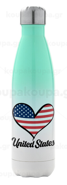 USA flag, Μεταλλικό παγούρι θερμός Πράσινο/Λευκό (Stainless steel), διπλού τοιχώματος, 500ml