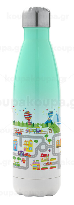 City road track maps, Μεταλλικό παγούρι θερμός Πράσινο/Λευκό (Stainless steel), διπλού τοιχώματος, 500ml