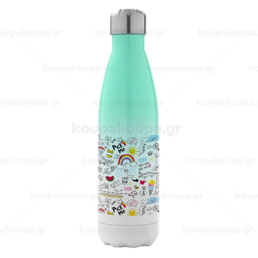 Doodle kids, Μεταλλικό παγούρι θερμός Πράσινο/Λευκό (Stainless steel), διπλού τοιχώματος, 500ml