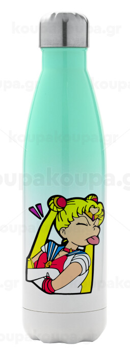 Sailor Moon, Μεταλλικό παγούρι θερμός Πράσινο/Λευκό (Stainless steel), διπλού τοιχώματος, 500ml