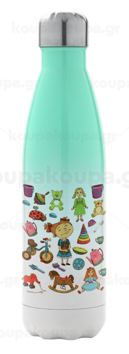 Toys Girl, Μεταλλικό παγούρι θερμός Πράσινο/Λευκό (Stainless steel), διπλού τοιχώματος, 500ml