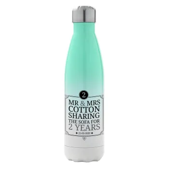 Mr & Mrs Sharing the sofa, Μεταλλικό παγούρι θερμός Πράσινο/Λευκό (Stainless steel), διπλού τοιχώματος, 500ml