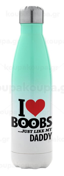 I Love boobs ...just like my daddy, Μεταλλικό παγούρι θερμός Πράσινο/Λευκό (Stainless steel), διπλού τοιχώματος, 500ml