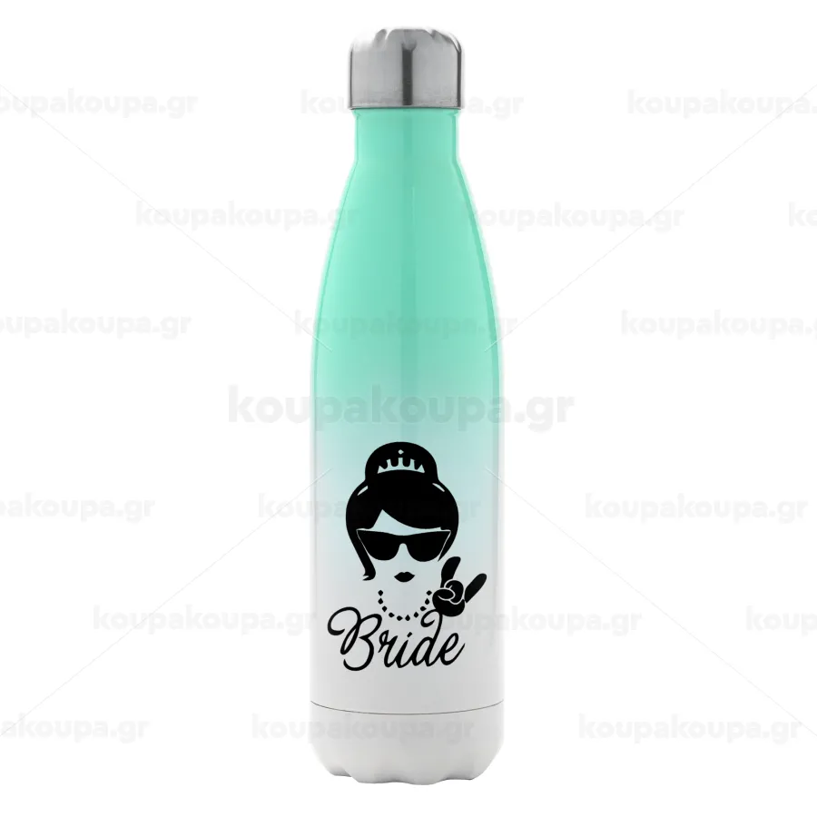 Bride hands, Μεταλλικό παγούρι θερμός Πράσινο/Λευκό (Stainless steel), διπλού τοιχώματος, 500ml