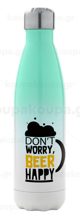 Don't worry BEER Happy, Μεταλλικό παγούρι θερμός Πράσινο/Λευκό (Stainless steel), διπλού τοιχώματος, 500ml