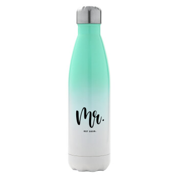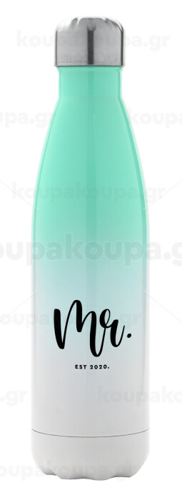 Mr & Mrs (Mr), Μεταλλικό παγούρι θερμός Πράσινο/Λευκό (Stainless steel), διπλού τοιχώματος, 500ml
