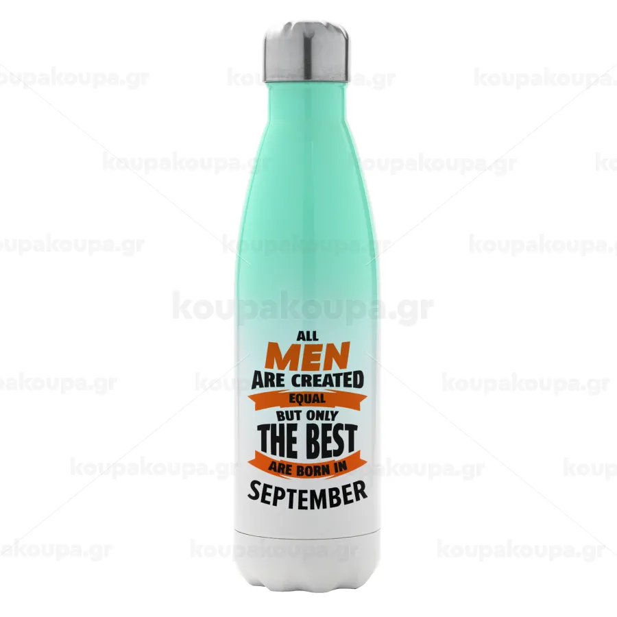 All men are created equal but only the best are born in September, Μεταλλικό παγούρι θερμός Πράσινο/Λευκό (Stainless steel), διπλού τοιχώματος, 500ml