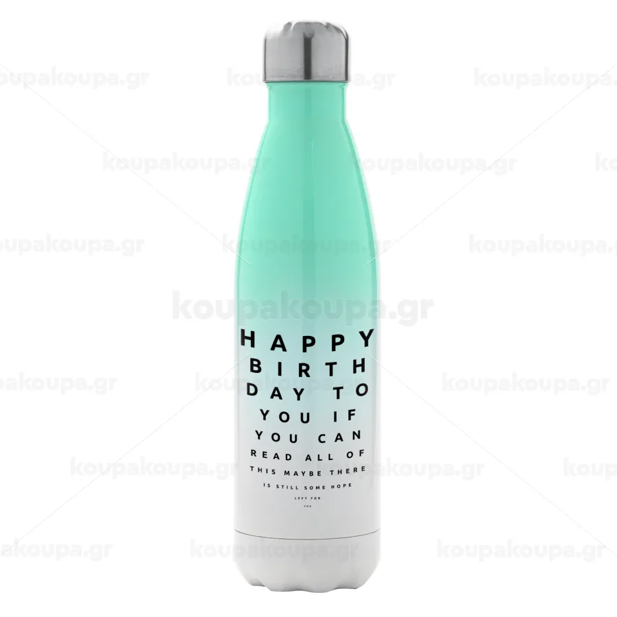 EYE tester happy birthday., Μεταλλικό παγούρι θερμός Πράσινο/Λευκό (Stainless steel), διπλού τοιχώματος, 500ml