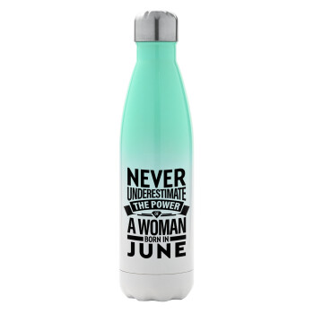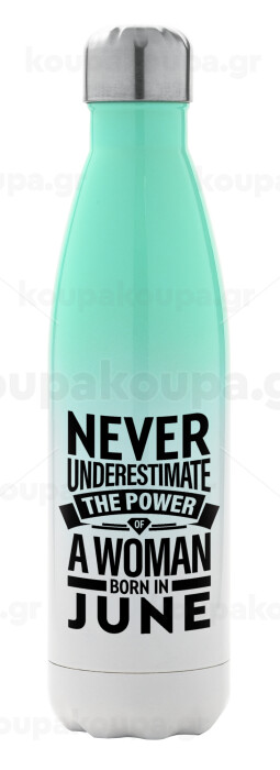 Never Underestimate the poer of a Woman born in..., Μεταλλικό παγούρι θερμός Πράσινο/Λευκό (Stainless steel), διπλού τοιχώματος, 500ml