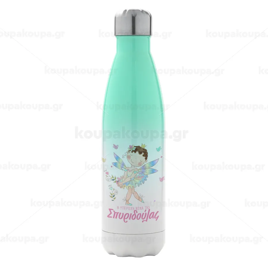 Η νονά μου, Νεράϊδα, Μεταλλικό παγούρι θερμός Πράσινο/Λευκό (Stainless steel), διπλού τοιχώματος, 500ml