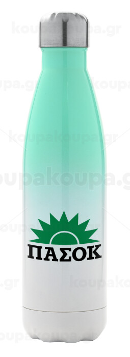 ΠΑΣΟΚ, Μεταλλικό παγούρι θερμός Πράσινο/Λευκό (Stainless steel), διπλού τοιχώματος, 500ml