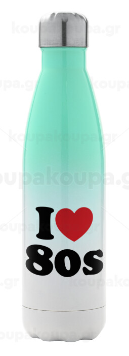 I Love 80s, Μεταλλικό παγούρι θερμός Πράσινο/Λευκό (Stainless steel), διπλού τοιχώματος, 500ml