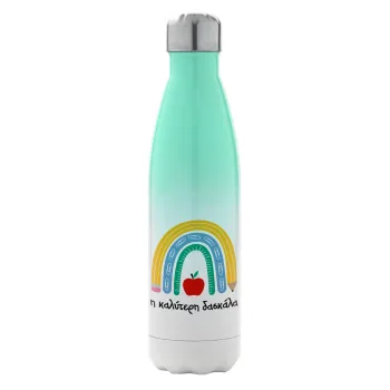 Η καλύτερη δασκάλα, Μεταλλικό παγούρι θερμός Πράσινο/Λευκό (Stainless steel), διπλού τοιχώματος, 500ml